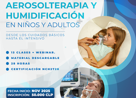 Curso dirigido a profesionales del área de la salud diseñado para actualizar y comprender en detalle todos los aspectos relacionados a la entrega de aerosoles médicos y el acondicionamiento de gases medicinales en niños y adultos a todo nivel de cuidado.